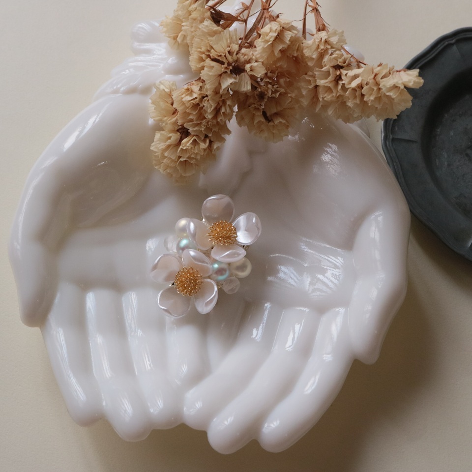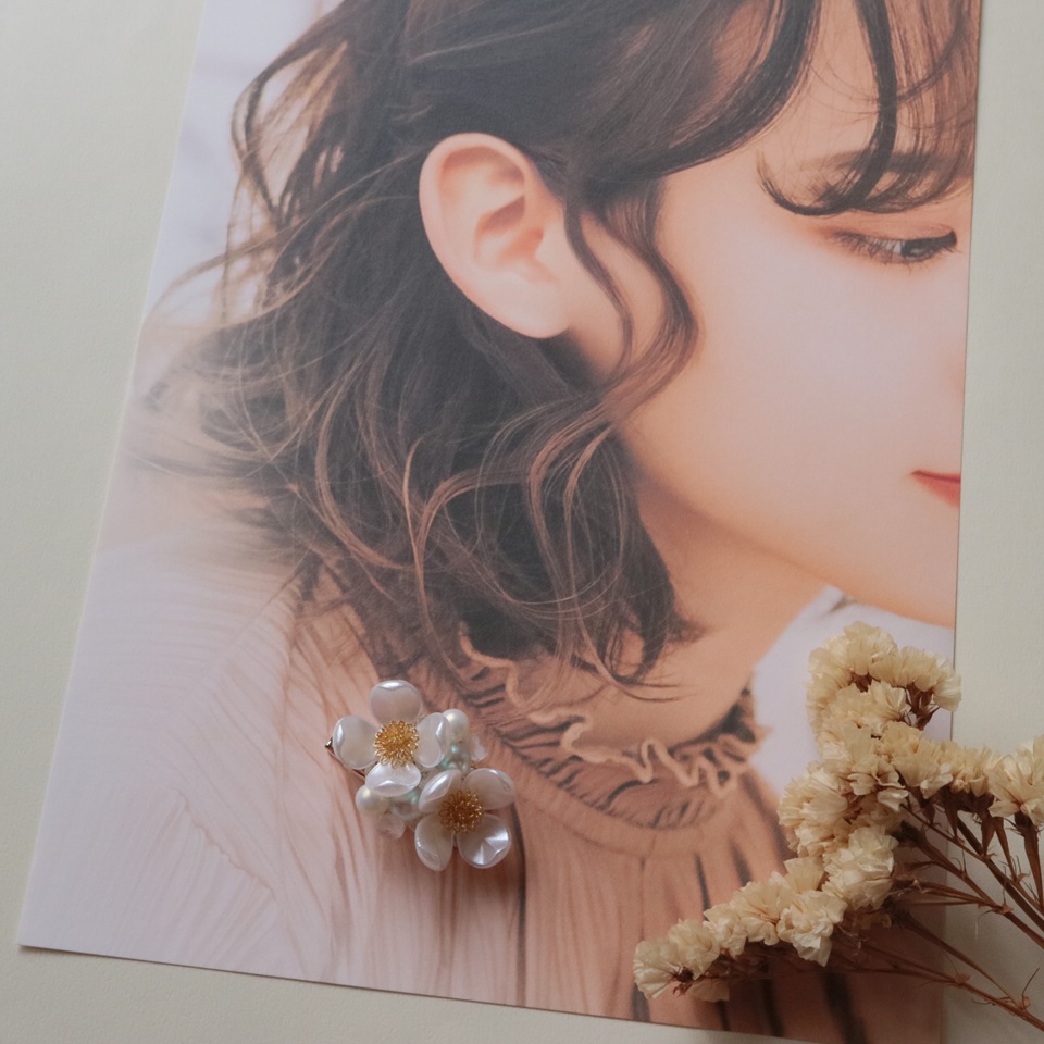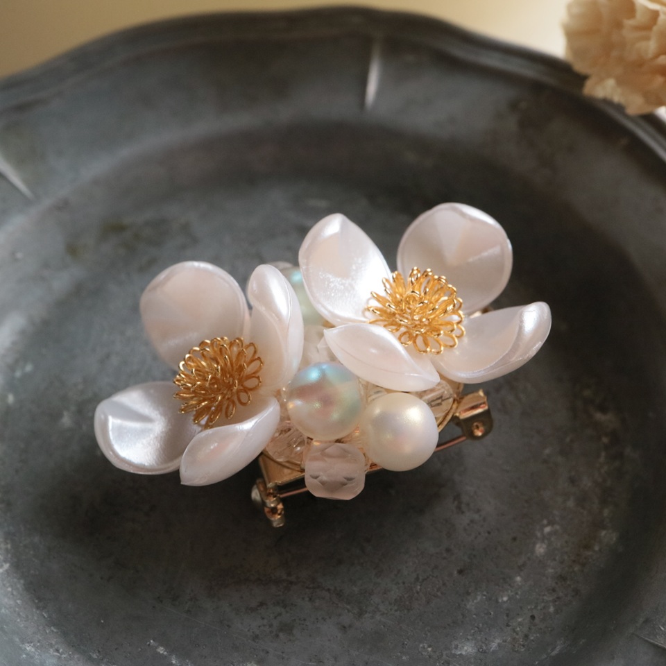 クリップ付き花水木のブローチ(ホワイト)