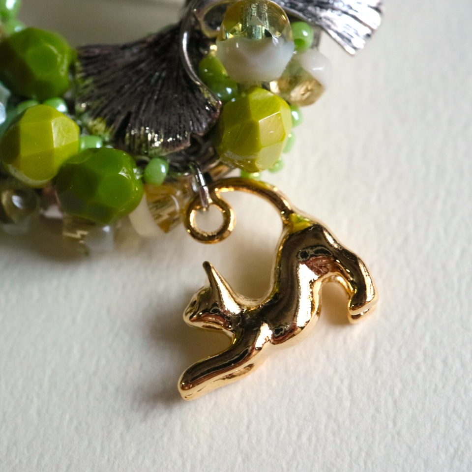 黄金色のいちょうには銀色の猫を添えました。