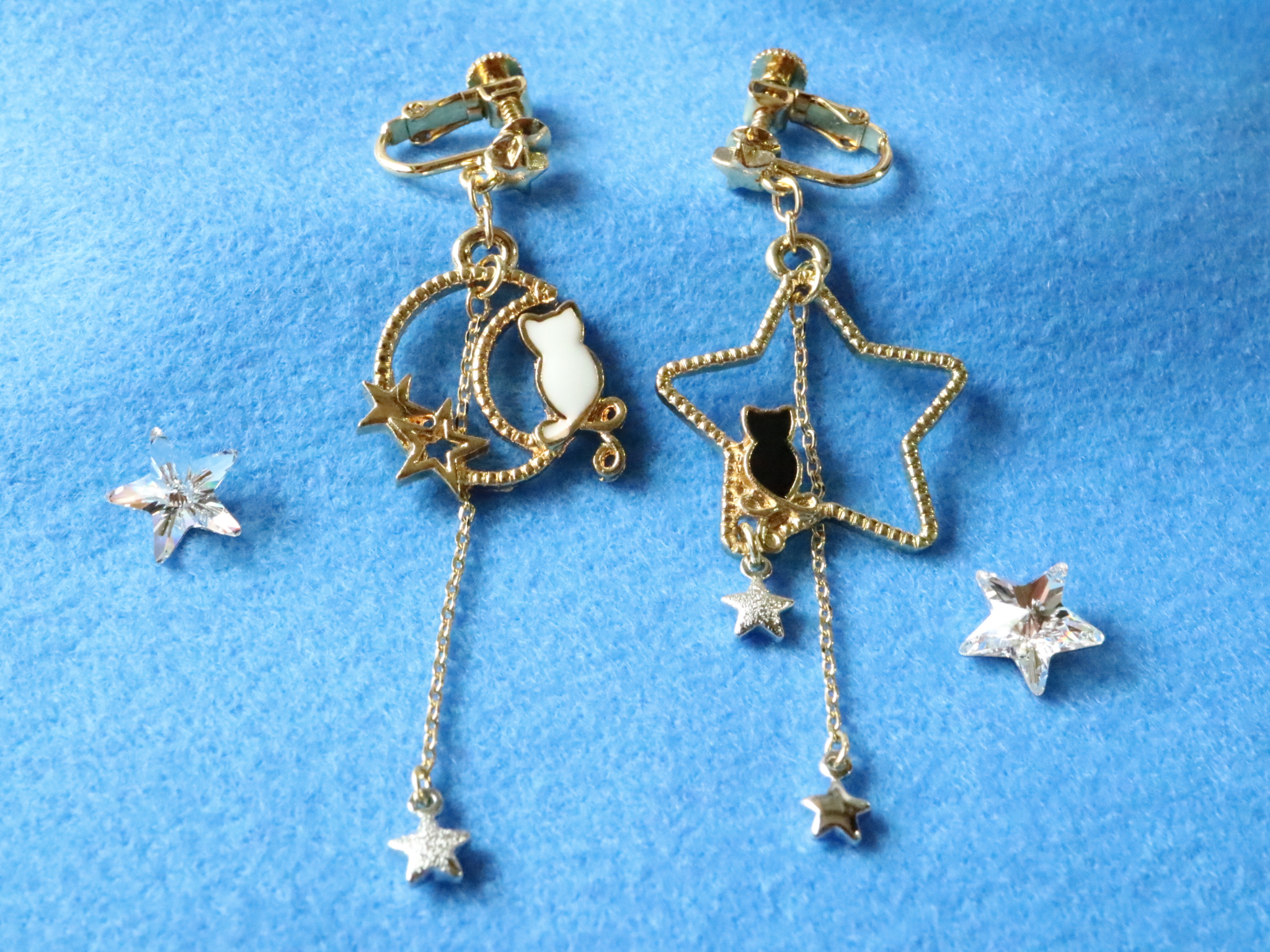 月と白猫のモチーフ、星と黒猫のモチーフの裏面には