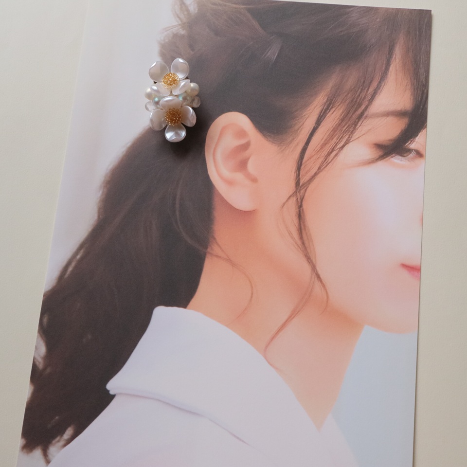 2種類の大粒のパールビーズで上品に彩りました。