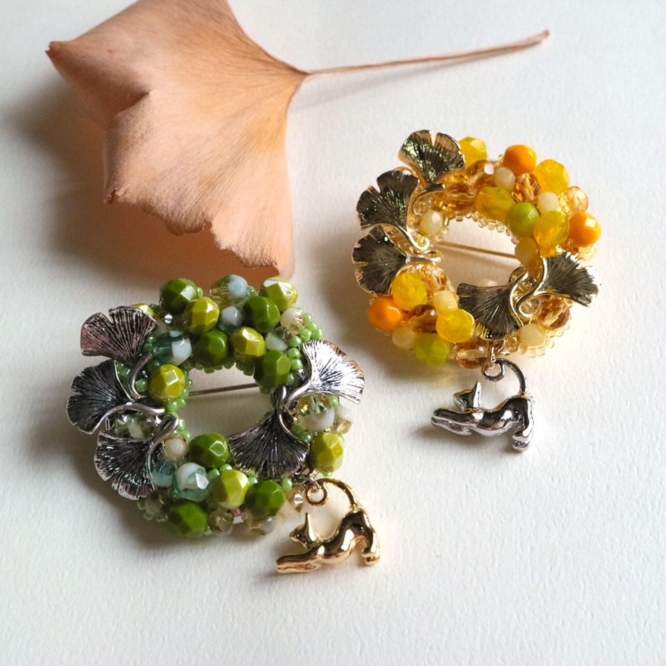 黄金色のいちょうには銀色の猫を添えました。